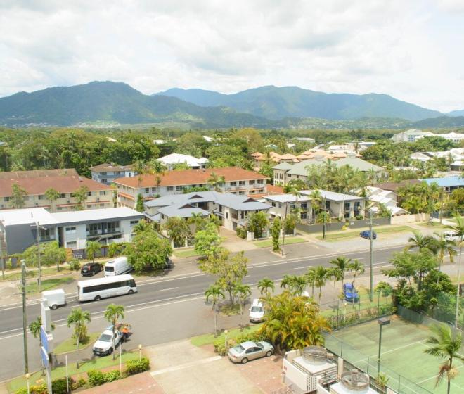 The Mountain View Corner Room provides a peaceful retreat with views over Cairns and the surrounding mountains. Furnished with a queen bed, air conditioning, private bathroom with bath, balcony, TV, refrigerator, tea/coffee facilities, and free Wi‑Fi, it’s perfect for guests who want space, comfort, and a scenic outlook.